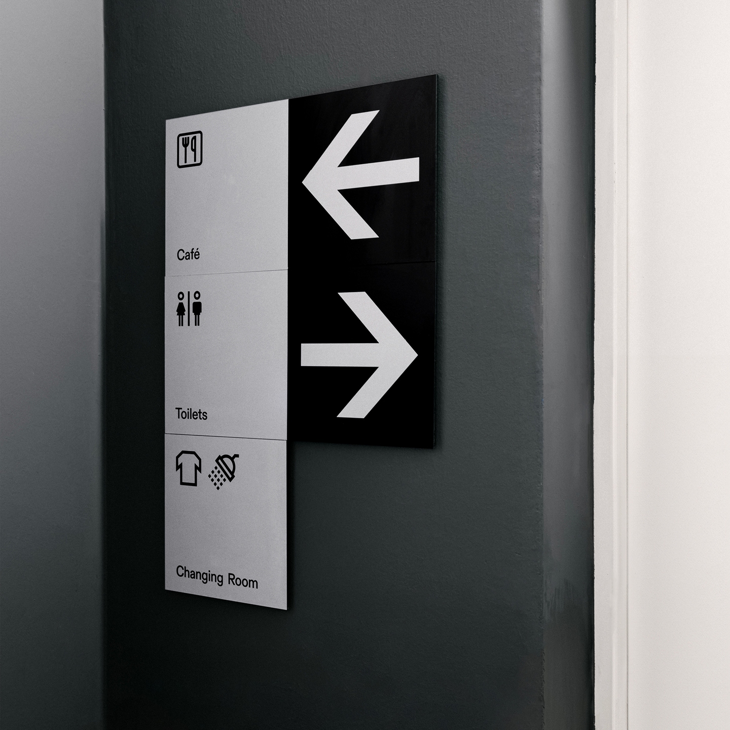 Ogni modulo è realizzato in alluminio stampato e può essere combinato con altri per generare configurazioni più complesse, scalabili e aggiornabili. La struttura segue una gerarchia informativa su tre livelli: indicazione del piano o direzione, identificazione dell’area tramite icona o iniziali, e dettaglio funzionale.