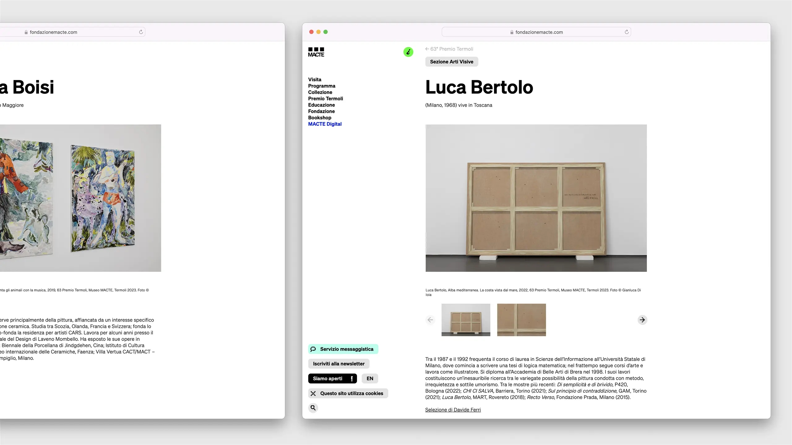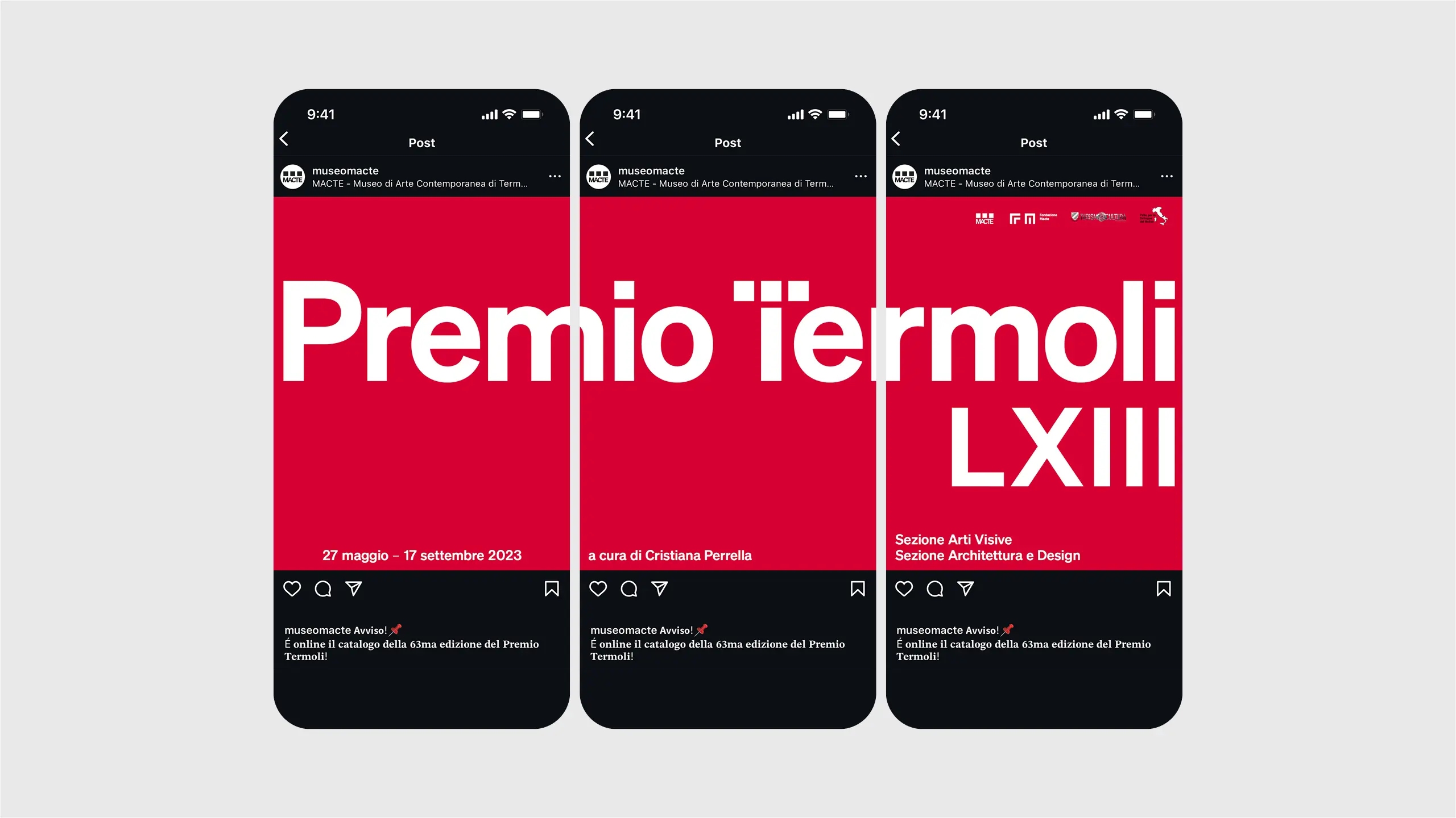 Sezione Grafica ha curato il design del catalogo del 63° Premio Termoli, un catalogo digitale che presenta opere e progetti selezionati per questa edizione del Premio. Il volume è diviso in due sezioni, la Sezione Arti Visive e la Sezione Architettura, ed è scaricabile dal sito di fondazione MACTE dove è possibile trovare anche una sezione dedicata al catalogo con ulteriori contenuti.