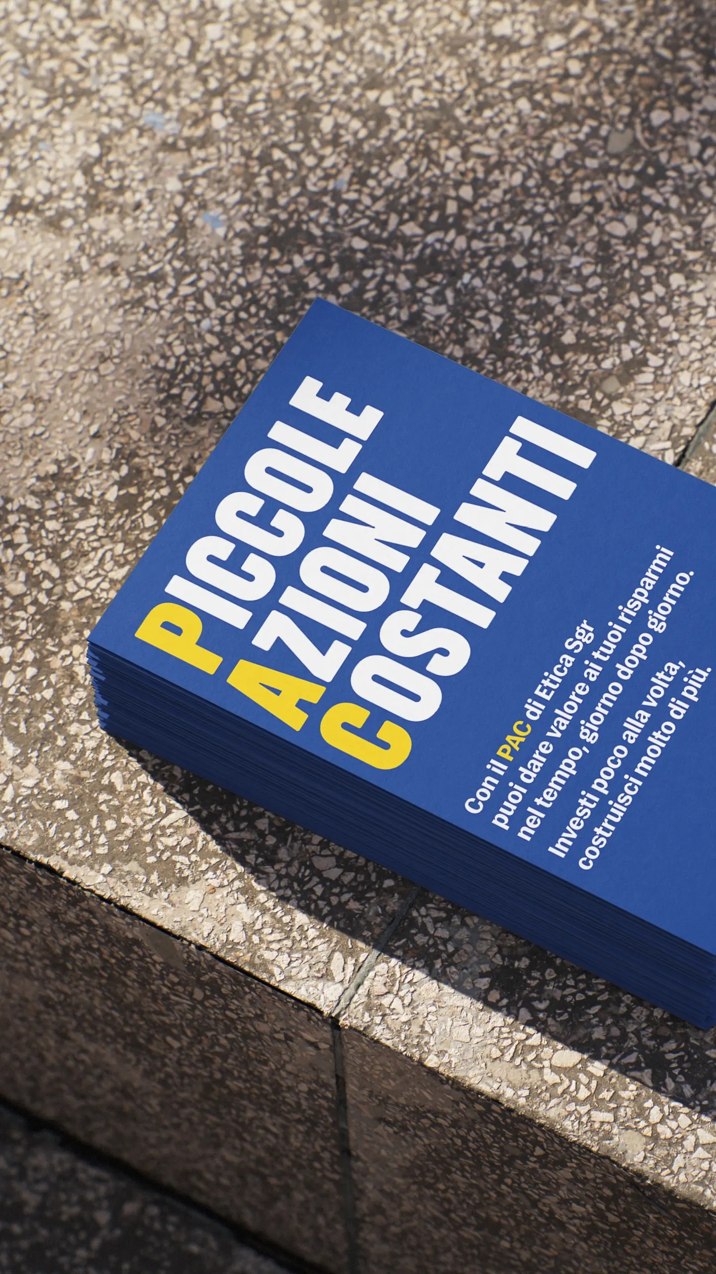 Per la campagna PAC 2025 di Etica Sgr, Sezione Grafica ha curato il restyling concettuale e visivo del Piano di Accumulo del Capitale, trasformando l’acronimo in Piccole Azioni Costanti per raccontare un risparmio consapevole.