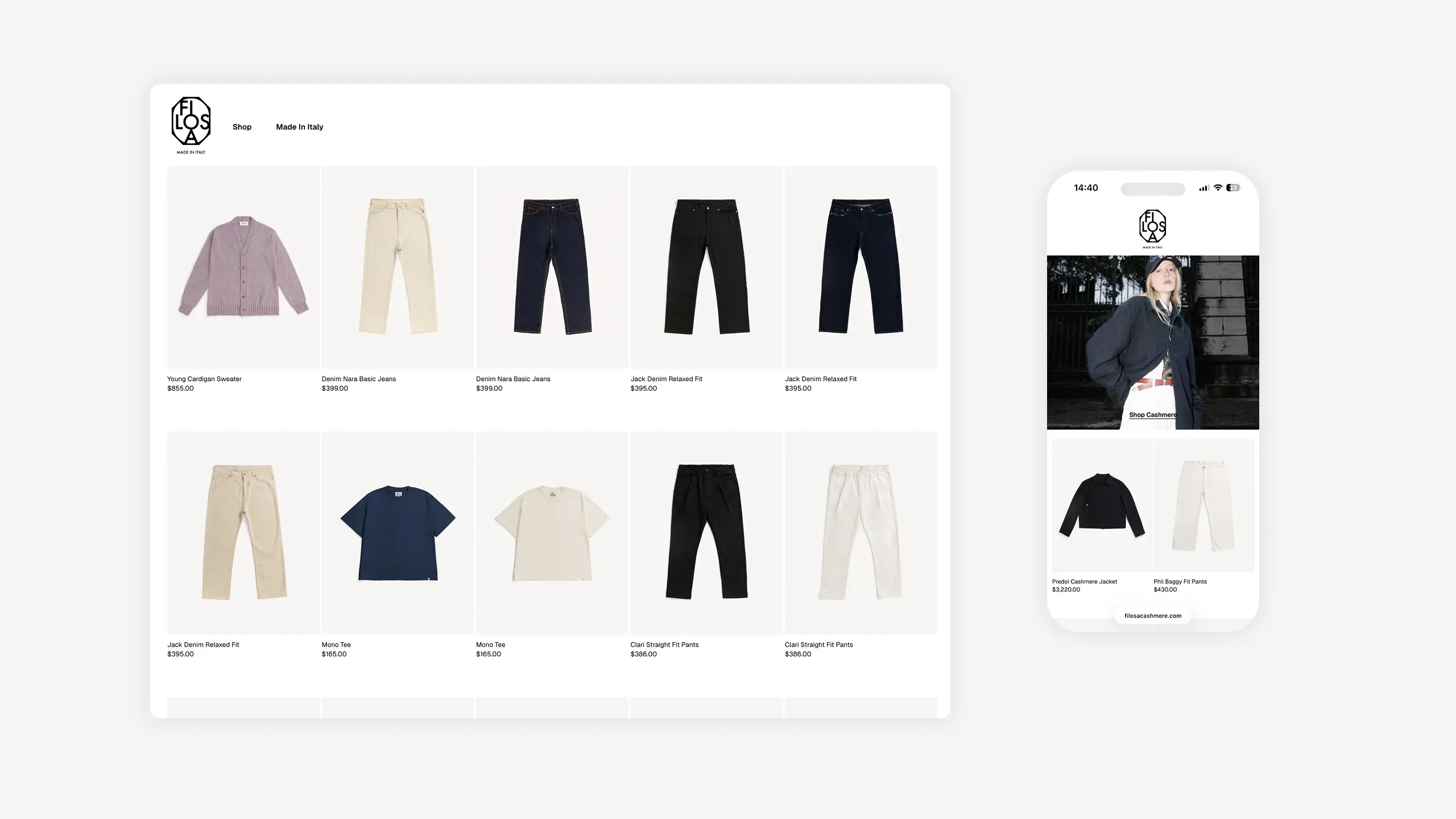 Filosa è un marchio di capi di lusso totalmente disegnato e prodotto in Italia, ma con ambizioni internazionali – soprattuto indirizzate al mercato US. Per questo Sezione Grafica ha lavorato per individuare un linguaggio grafico e visivo che tenesse insieme queste due anime: una forte radicazione nella tradizione e nella qualità del Made in Italy, un gusto internazionale e intergenerazionale per il lusso e lo stile.