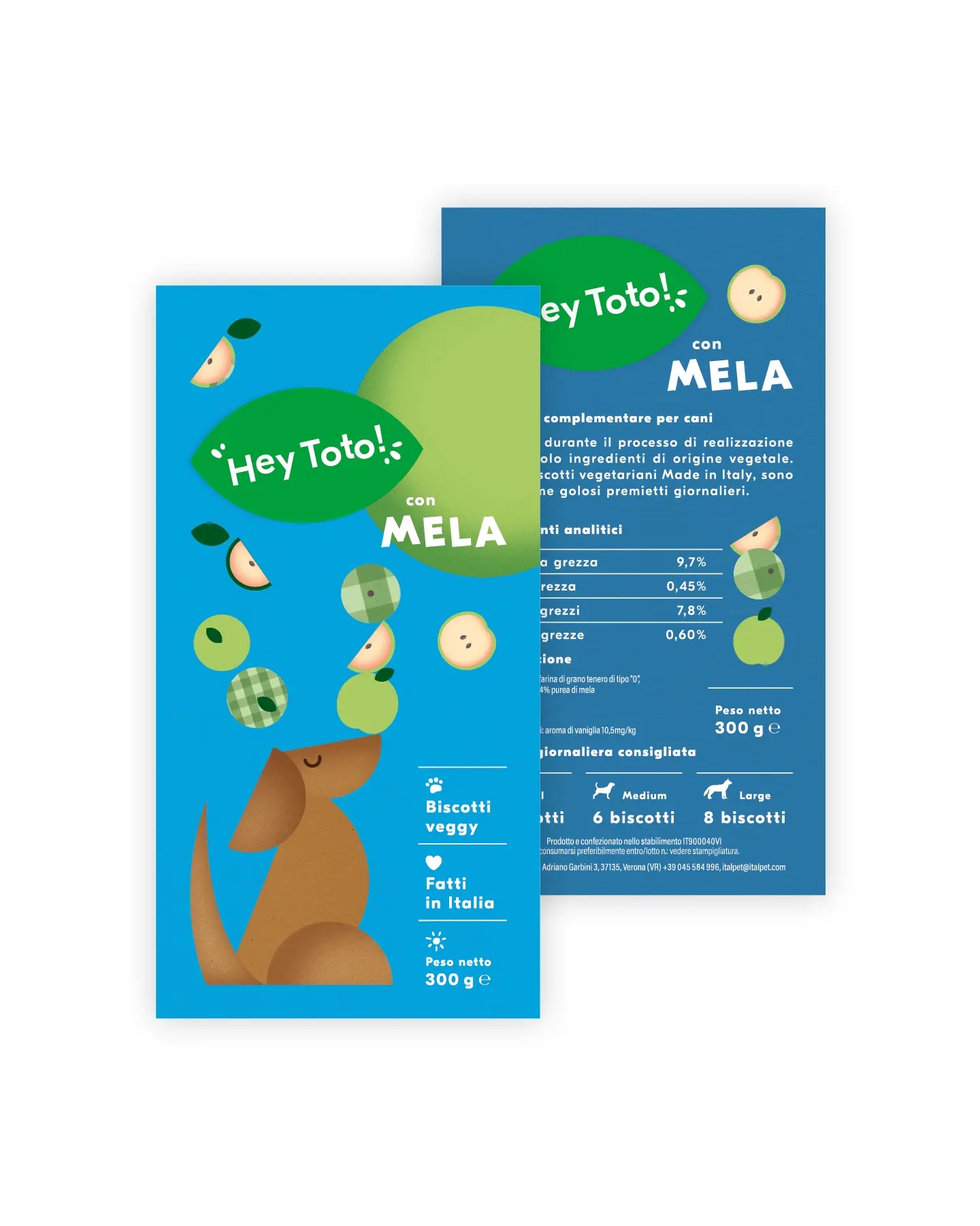 Hey Toto! è un marchio di biscotti vegani per cani per il quale Sezione Grafica ha ideato il nome e sviluppato l’identità visiva.