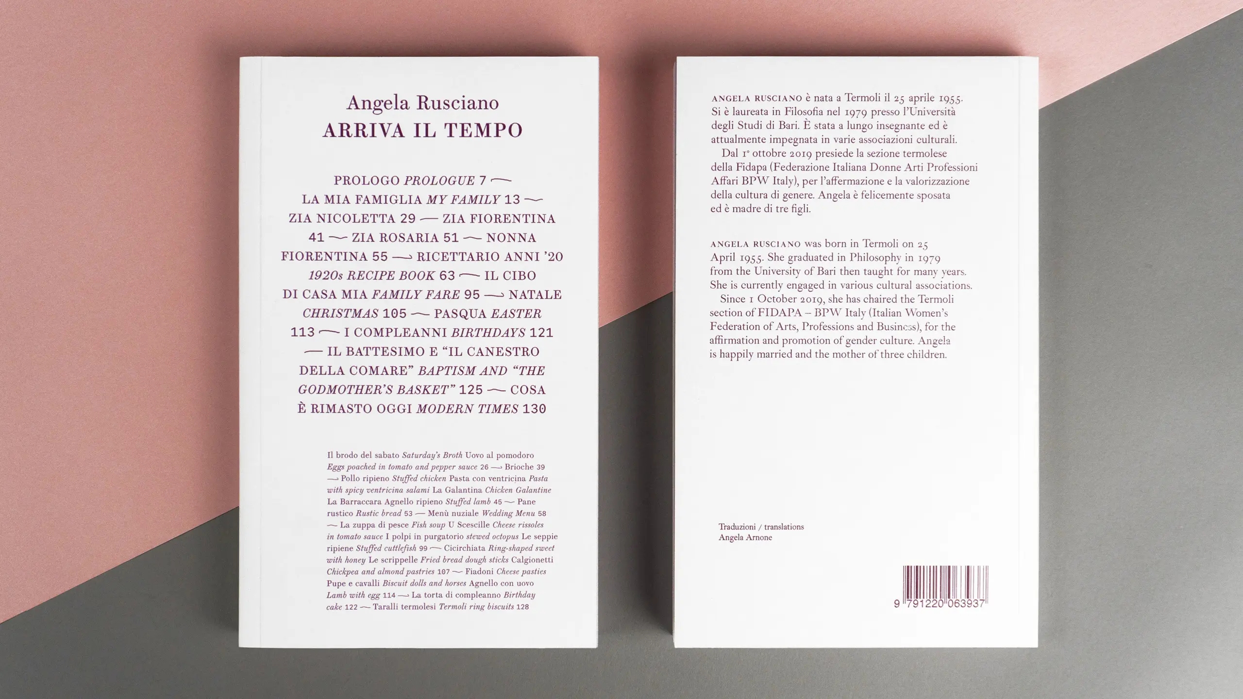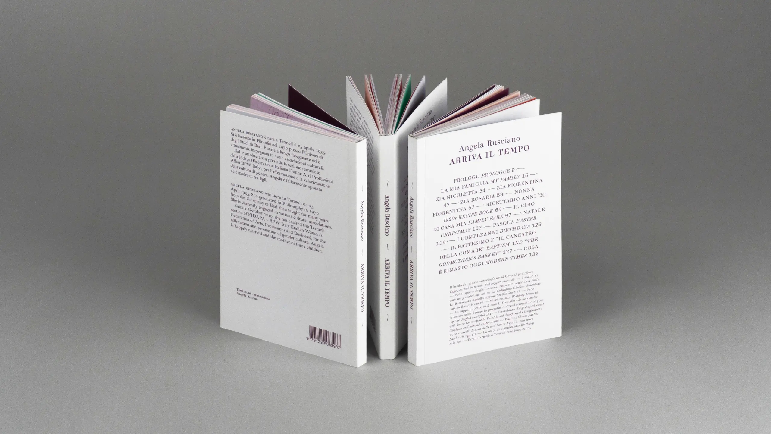 Sotto la direzione artistica di Francesca Occhionero, Sezione Grafica cura il design editoriale di Arriva il tempo di Angela Rusciano, un piccolo e raffinato volume in doppia lingua che intreccia sapientemente tradizione culinaria e memorie familiari.