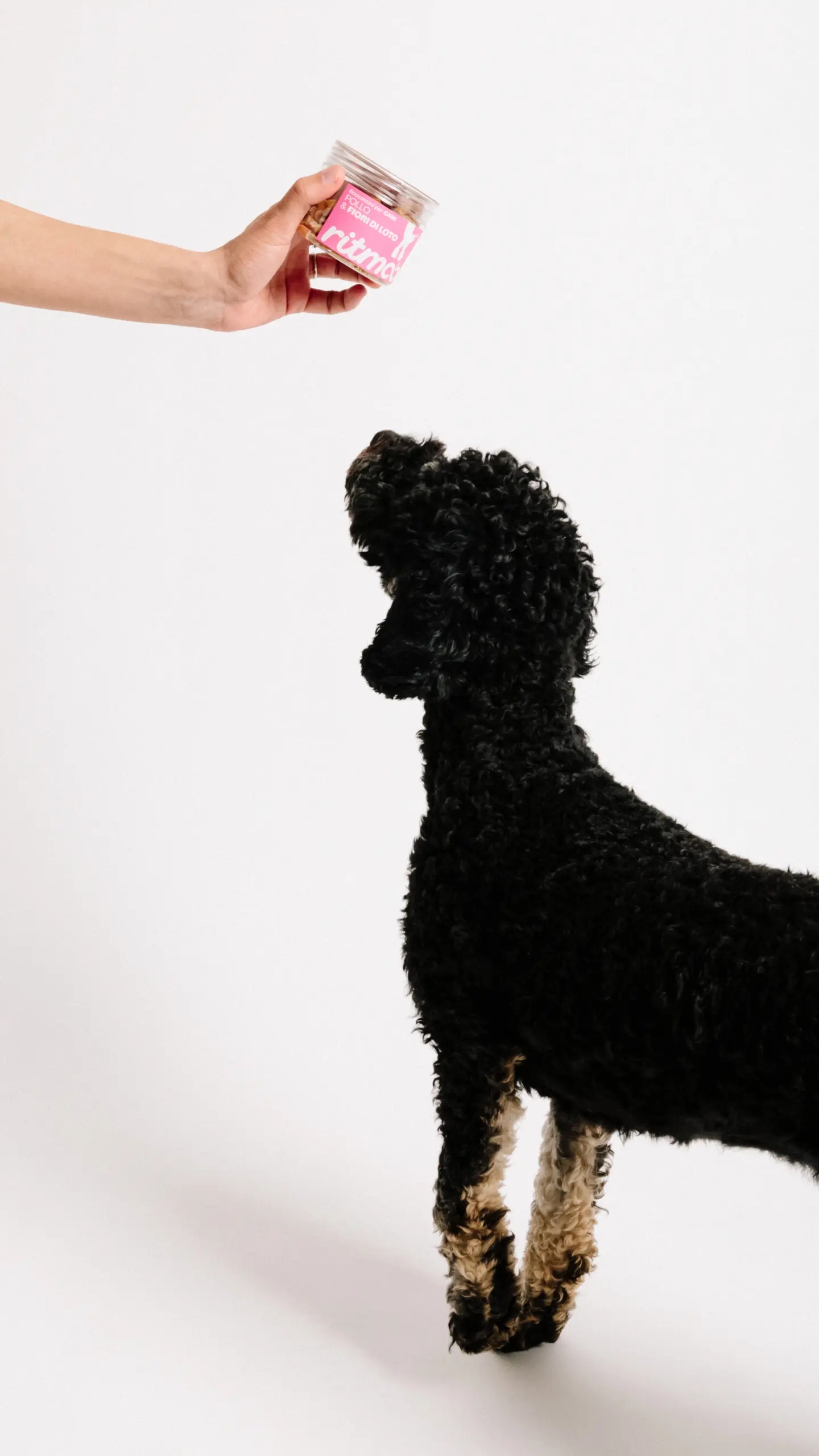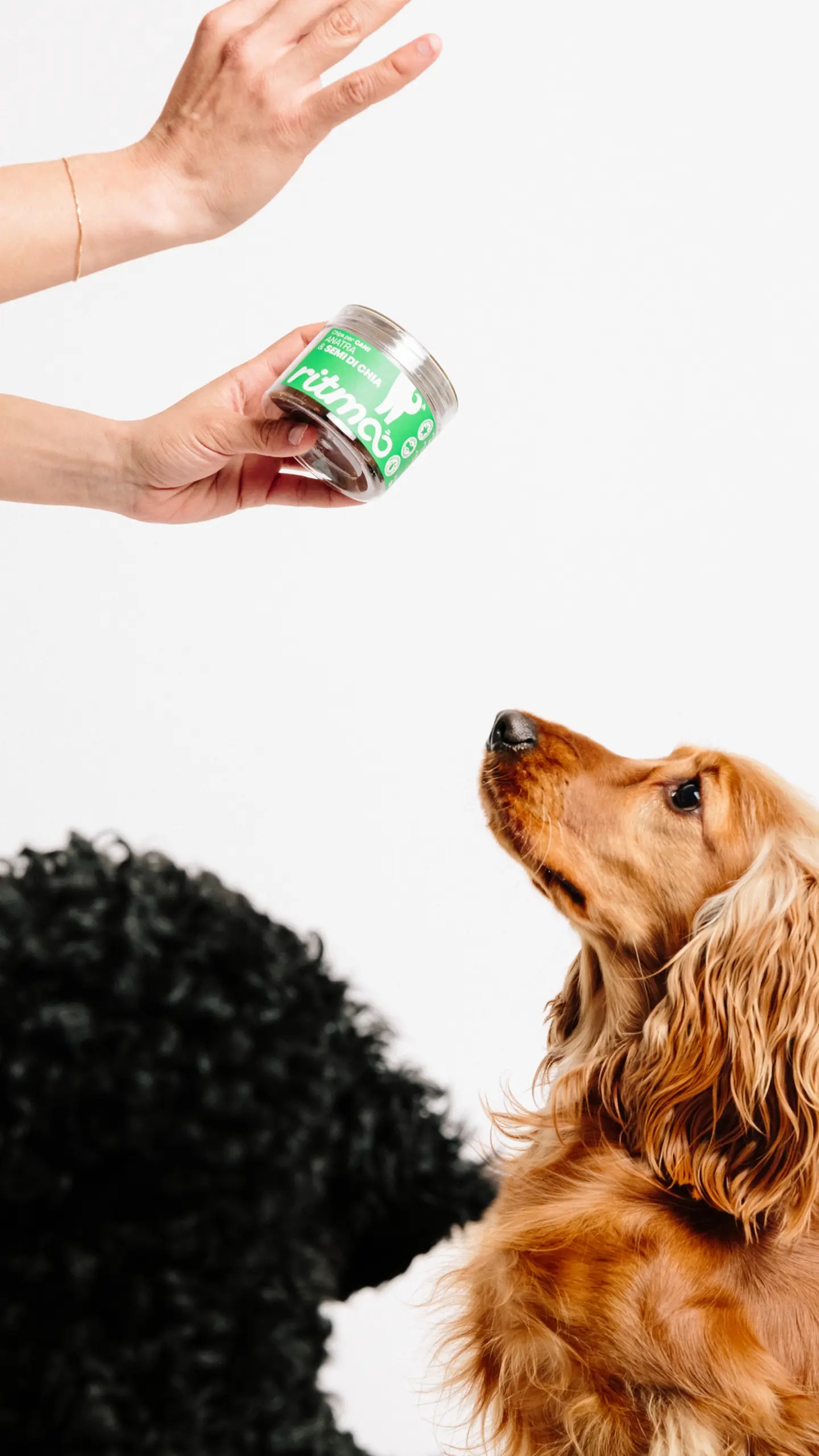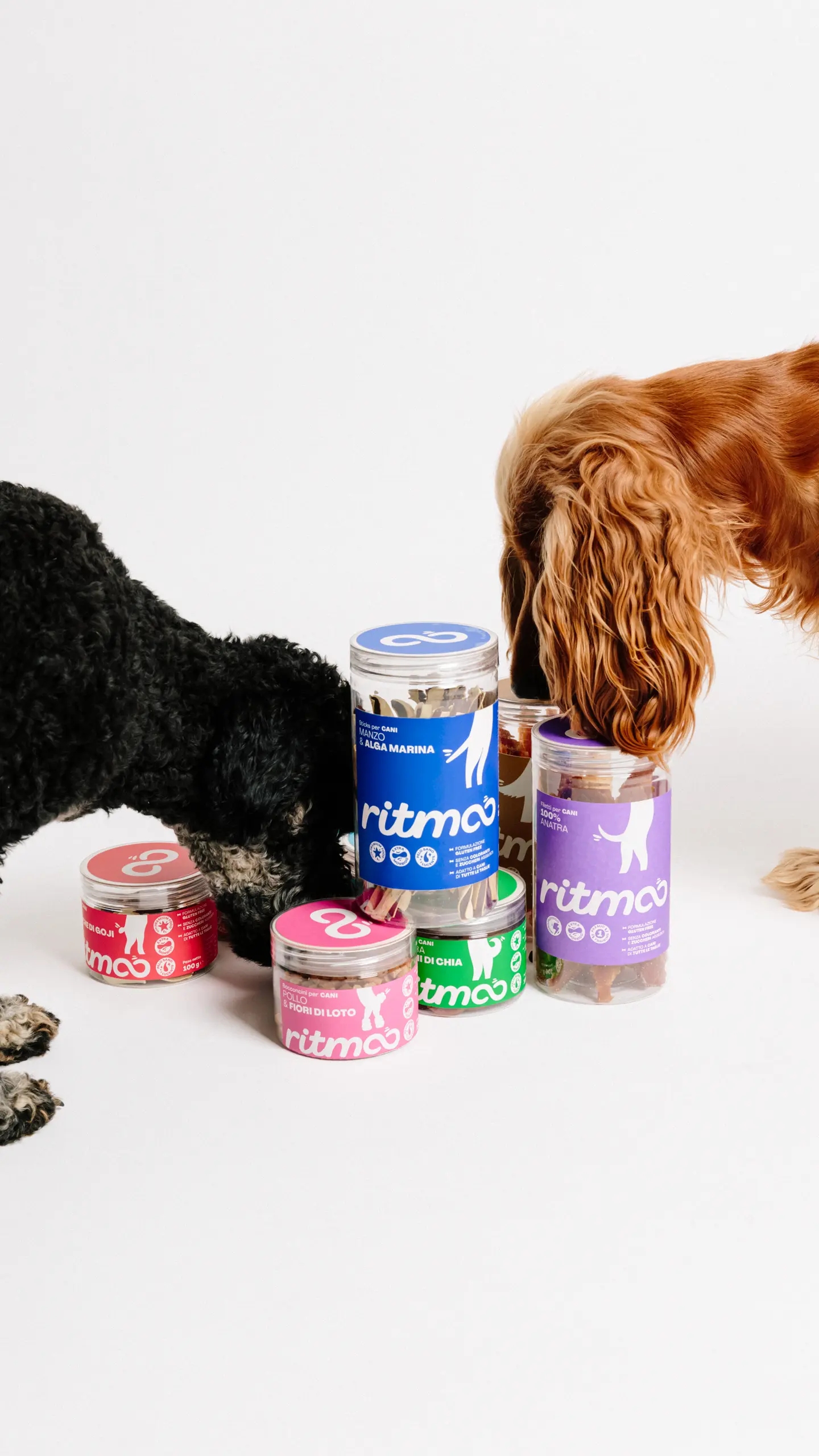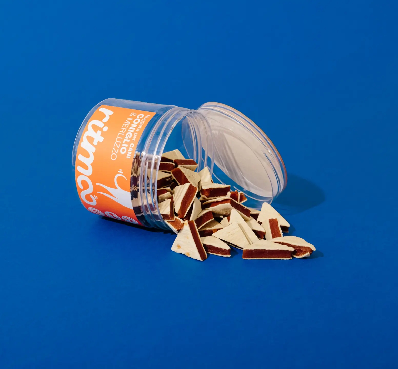 Sezione Grafica si è occupata del naming e dell’identità visiva di Ritmoo, una linea di snack per cani di alta qualità. Il nome “Ritmoo” richiama il suono degli snack nel barattolo che attira immediatamente l’attenzione del cane, creando un’associazione giocosa e dinamica con l’atto di scodinzolare “a tempo di snack”, payoff del brand.