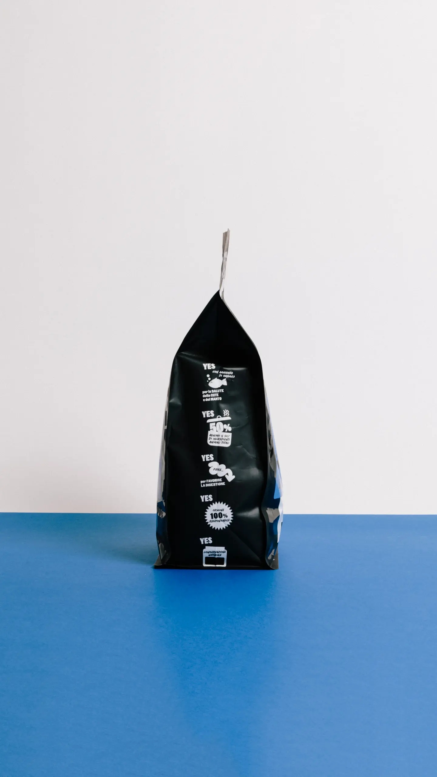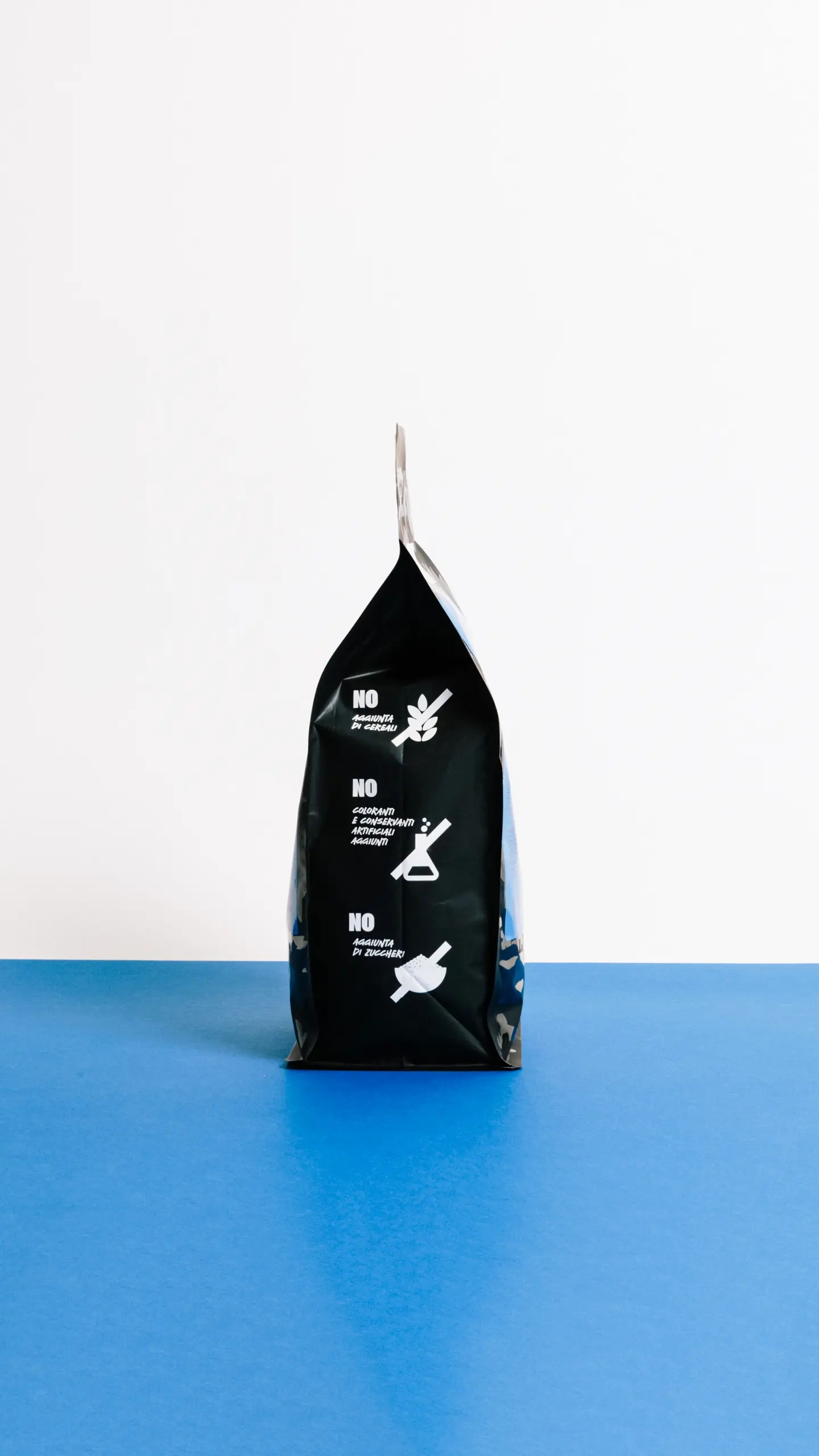La struttura del sacco, con una base comune e un’etichetta personalizzata, risponde ai limiti tecnici di produzione ma è stata integrata nel design in modo strategico. Sezione Grafica ha sfruttato questi limiti come un’opportunità di design, trasformandoli in elementi distintivi che contribuiscono sia alla funzionalità che all’estetica del packaging.