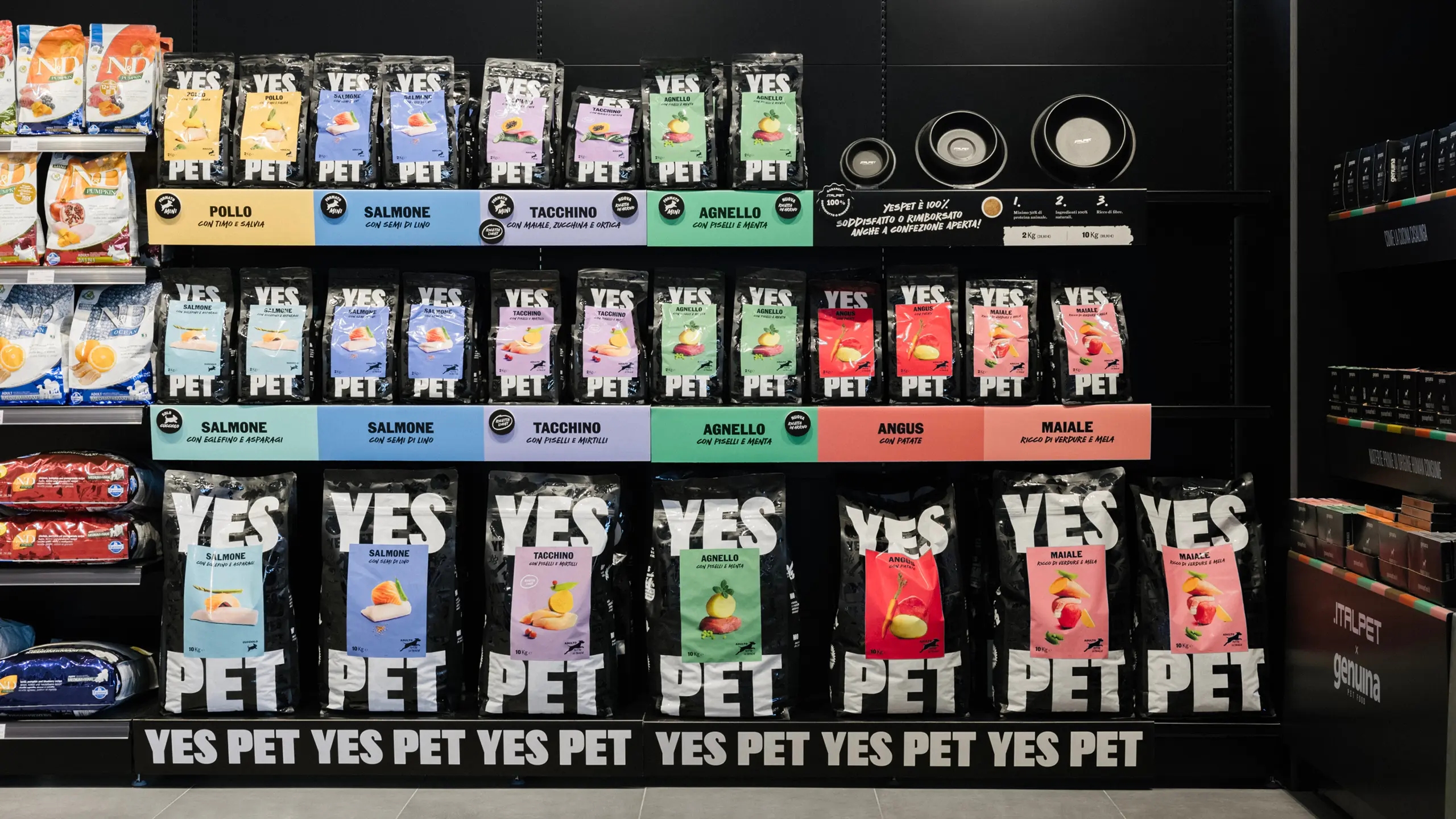 Sezione Grafica firma l’identità visiva di YESPET!, sfidando il sovraffollamento visivo del settore pet con un sistema di packaging chiaro, modulare e fotografico, capace di trasformare i limiti produttivi in un vantaggio estetico e funzionale.